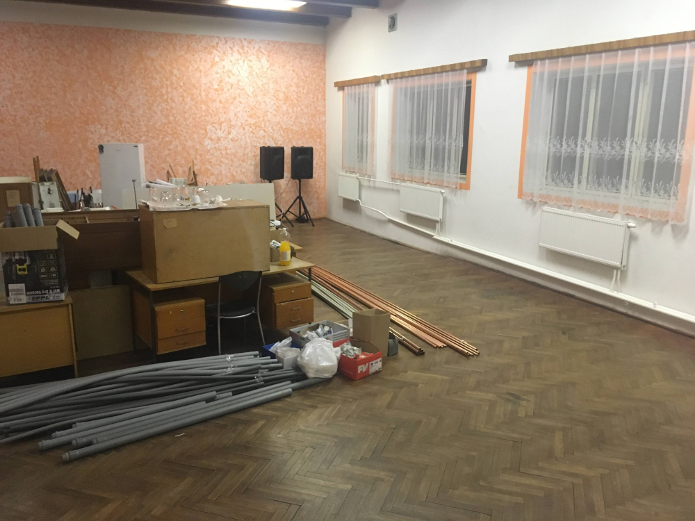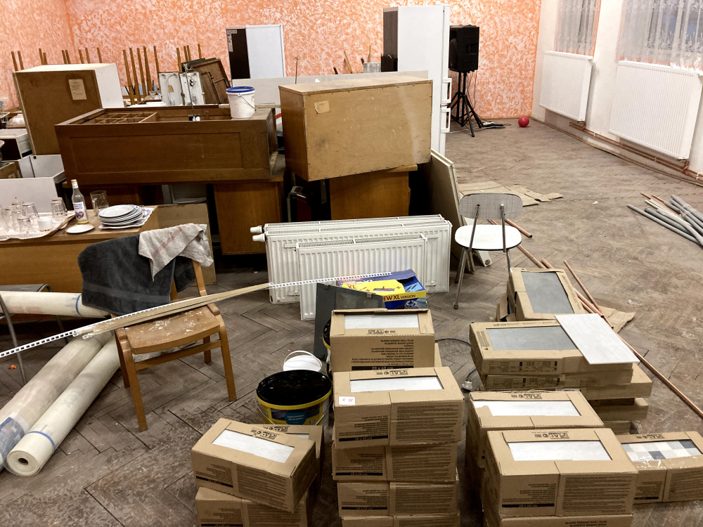 Proběhlá rekonstrukce obecního úřadu - Sociální zázemí, radiátory a střecha nad toaletami